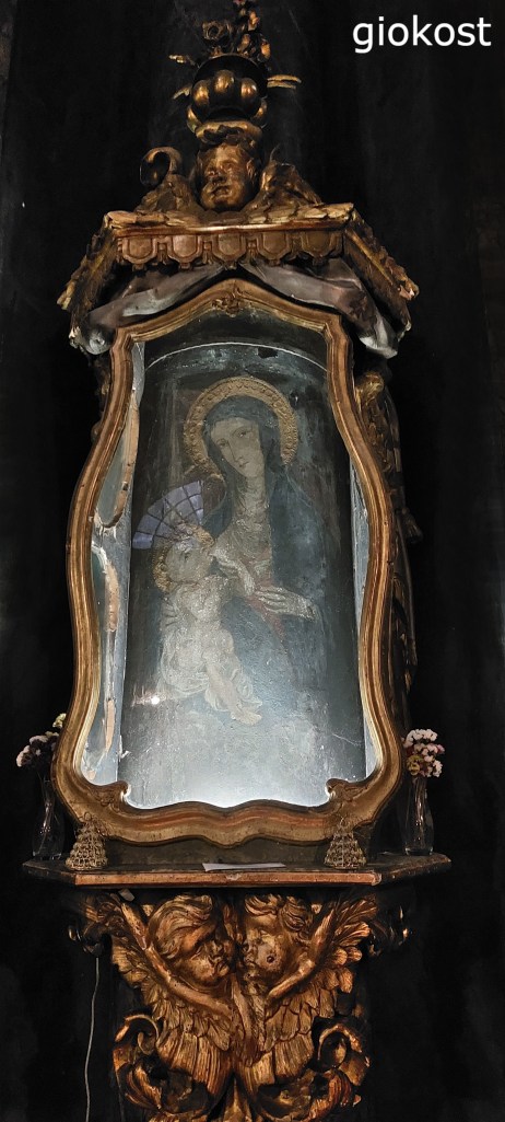 Della struttura originaria, oltre al campanile, dalla guglia ottagonale, si ritiene che anche la colonna di marmo verde di Levanto che contiene, protetta in una teca barocca, la trecentesca immagine della Madonna della Vita, detta anche Madonna del Latte, sia sopravvissuta ai molti rifacimenti grazie alla devozione dei fedeli soprattutto delle partorienti, infatti, il dipinto è circondato da ex voto di ringraziamento in forma di bavaglini. Si trova tra il primo e il secondo altare della navata di destra e ritrae la Vergine appare a seno scoperto nell’atto di allattare il bambino.