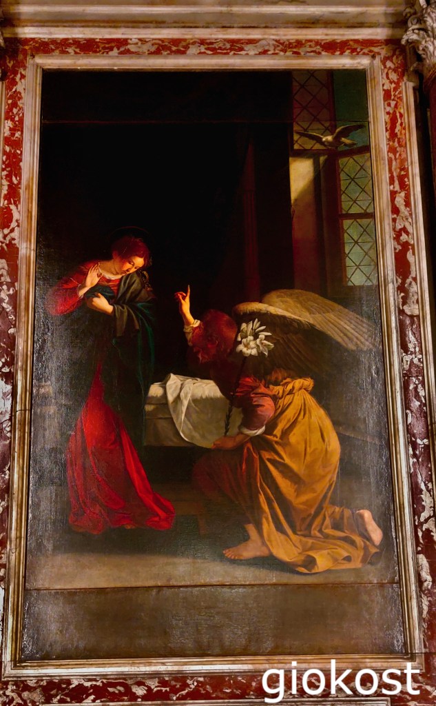 Ai lati dodici cappelle decorate con preziosi dipinti come l‘Annunciazione di Orazio Gentileschi posto sopra l’altare della cappella dell’Annunziata della famiglia Grimaldi-Cebà, nella navata di destra. Ritrae Maria giovane intenta ad accogliere l’angelo che le porta il messaggio divino, quello che colpisce è l’uso della luce in un contesto tipicamente classico che evidenzia dettagli come il letto sullo sfondo. Un’altra versione, tardiva, è visibile nella galleria Sabauda di Torino.