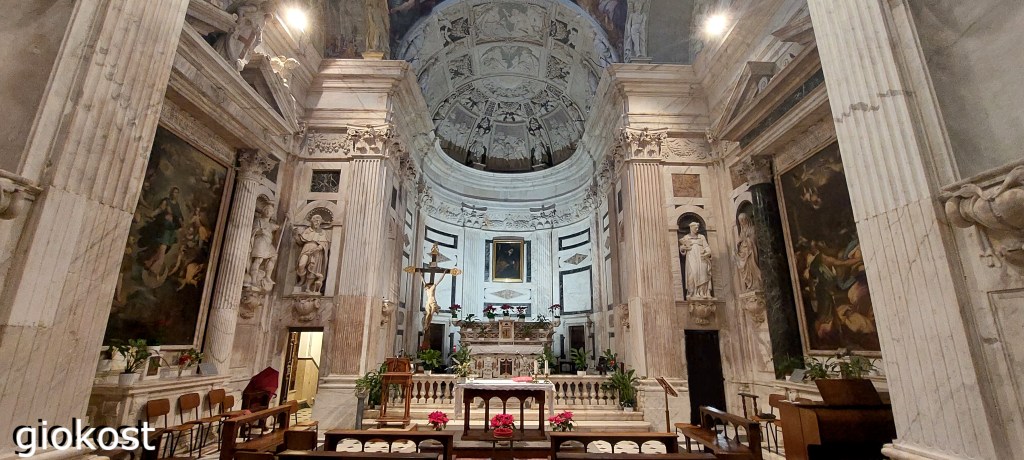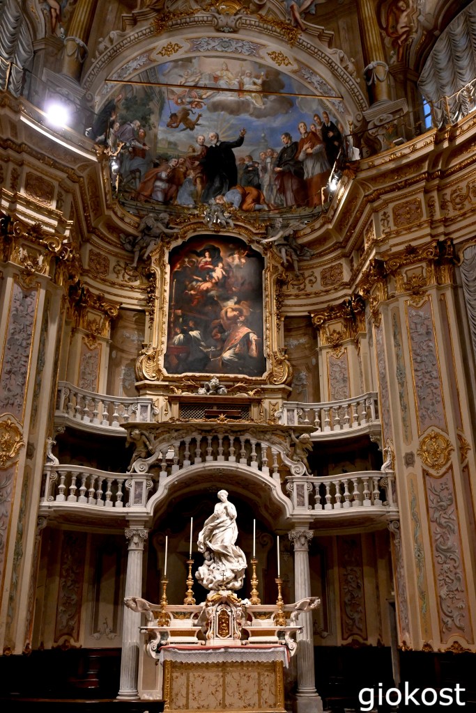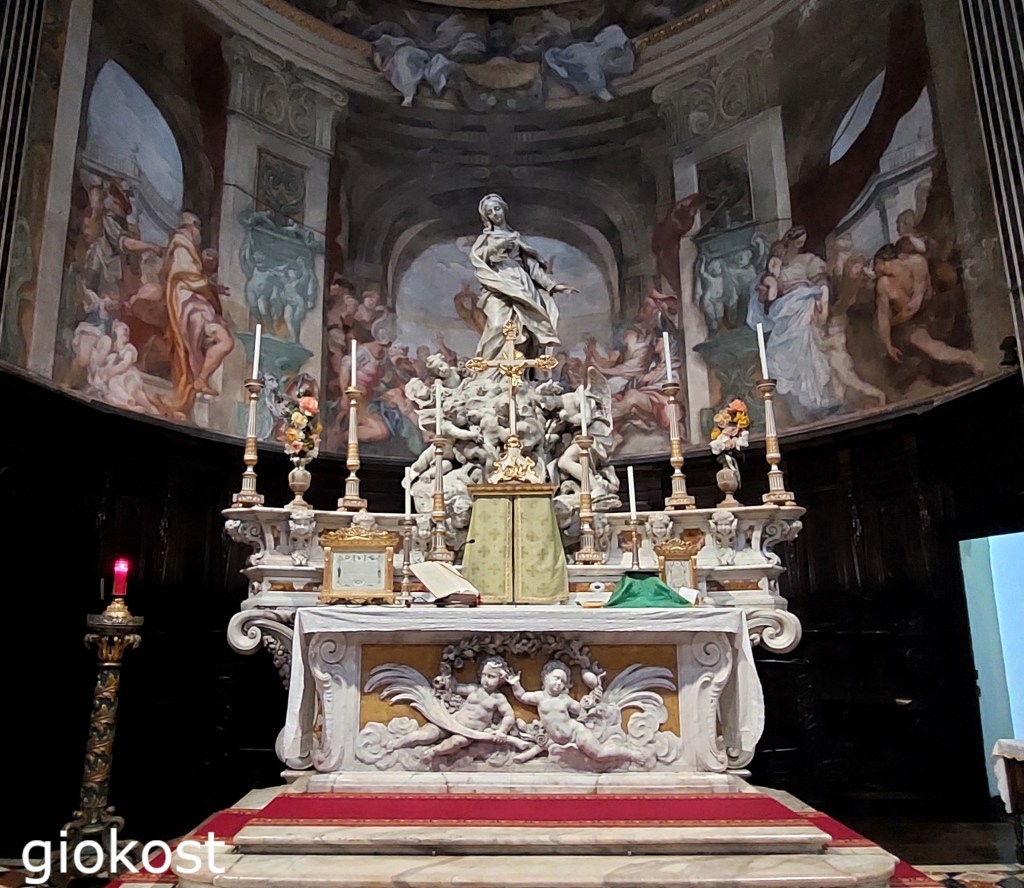Un’altra scoperta da fare è l’Oratorio, un gioiello rococò dove spicca, sopra l’altare, l’Immacolata, raccolta in preghiera, una statua in marmo bianco realizzata da Pierre Puget, guardandola sembra elevarsi verso l’alto data formazione spiraliforme della composizione. L’abside completa questa meraviglia con un dipinto di Giacomo Antonio Boni dove San Filippo Neri è raffigurato a colloquio con altri personaggi, sotto la tela di Simon Dubois, San Filippo in estasi. Prima di uscire alziamo lo sguardo e sulla volta vediamo un’ulteriore perla, l’Assunta fra schiere di patriarchi e di profeti opera dello stesso Boni, un insieme di colori tenui le danno una spiritualità del tutto particolare.